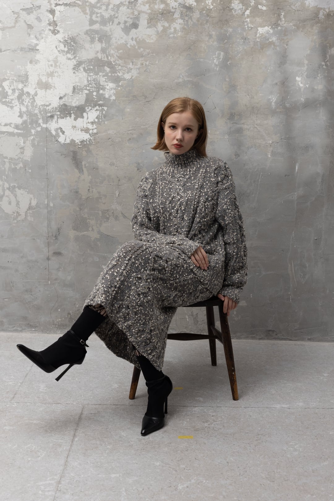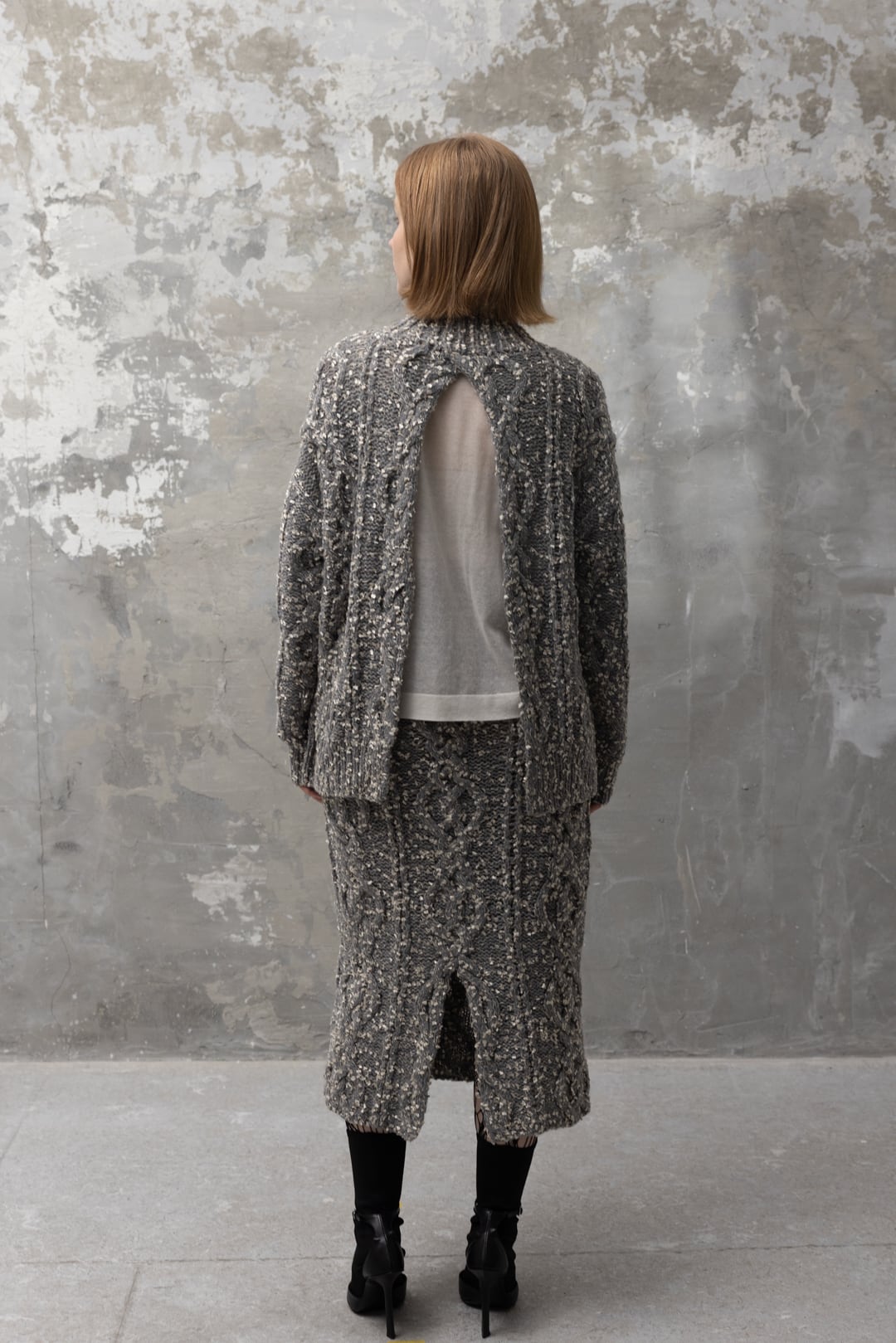 アラン柄ニットプルとセットアップで着用できるペンシルシルエットニットスカートです。