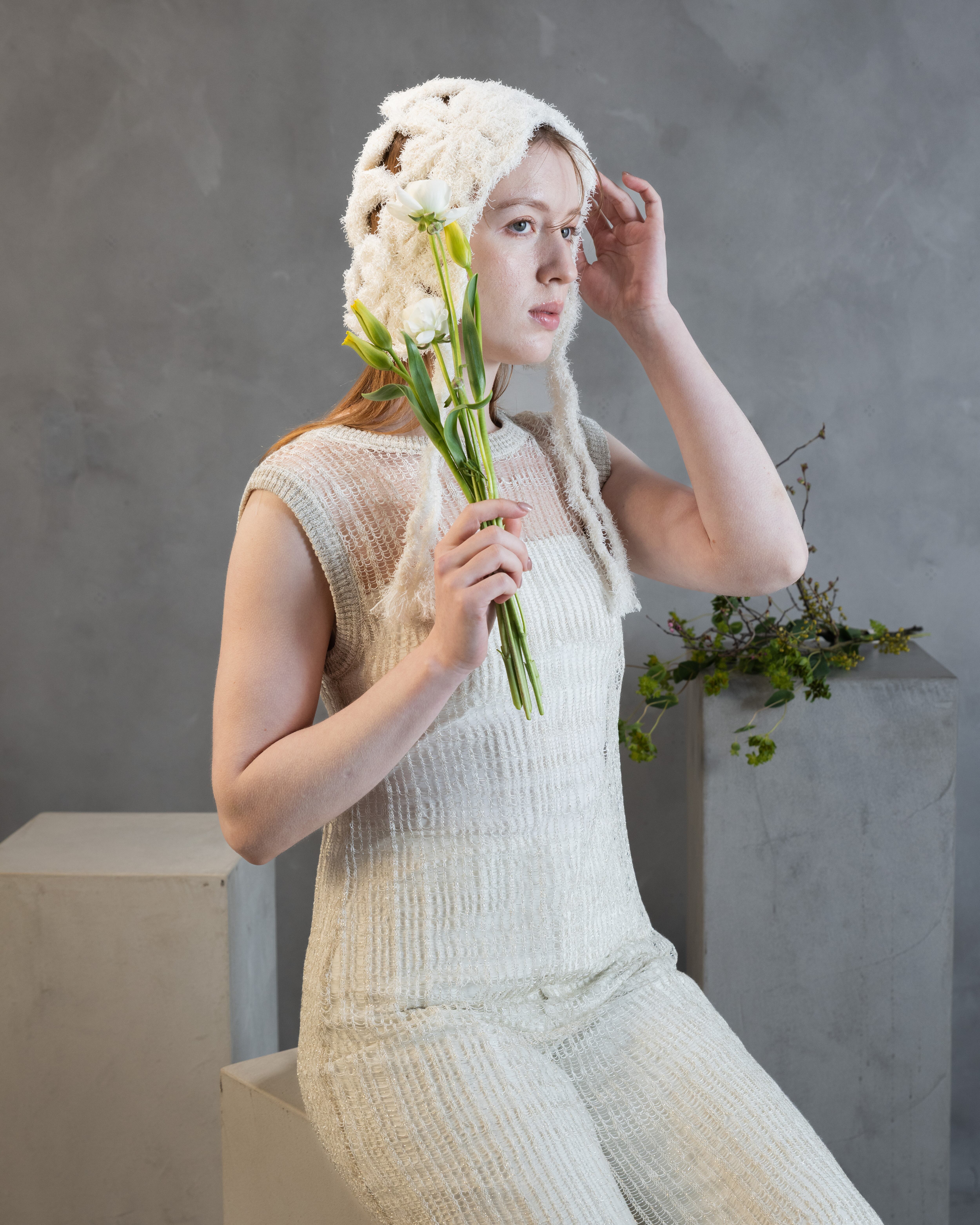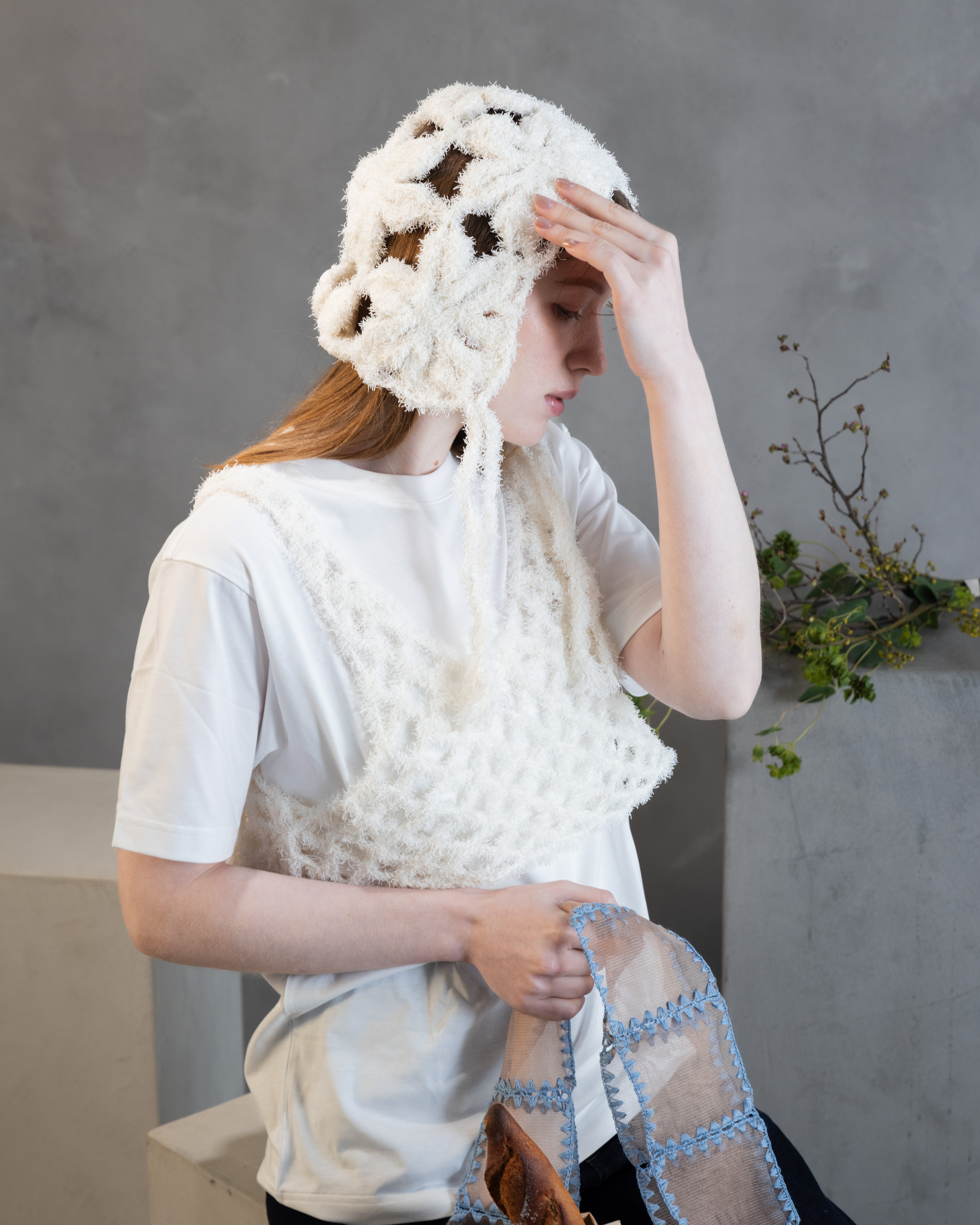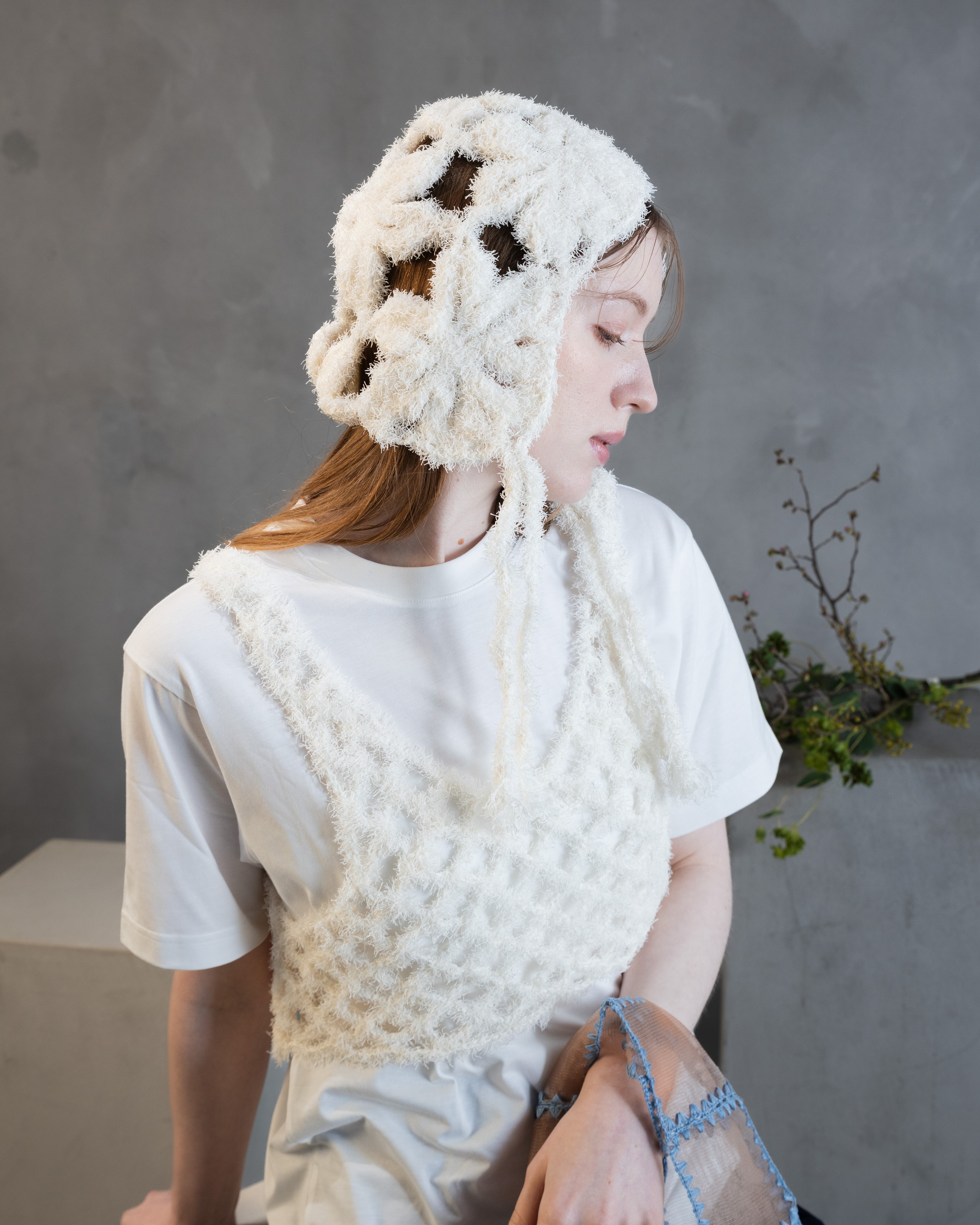Canapa(ヘンプ麻)特有の、軽く清涼感ある夏らしい素材を生かし、モチーフ編みでさらに遊び心あるクラフト感を演出できるヘッドピースを作りました。