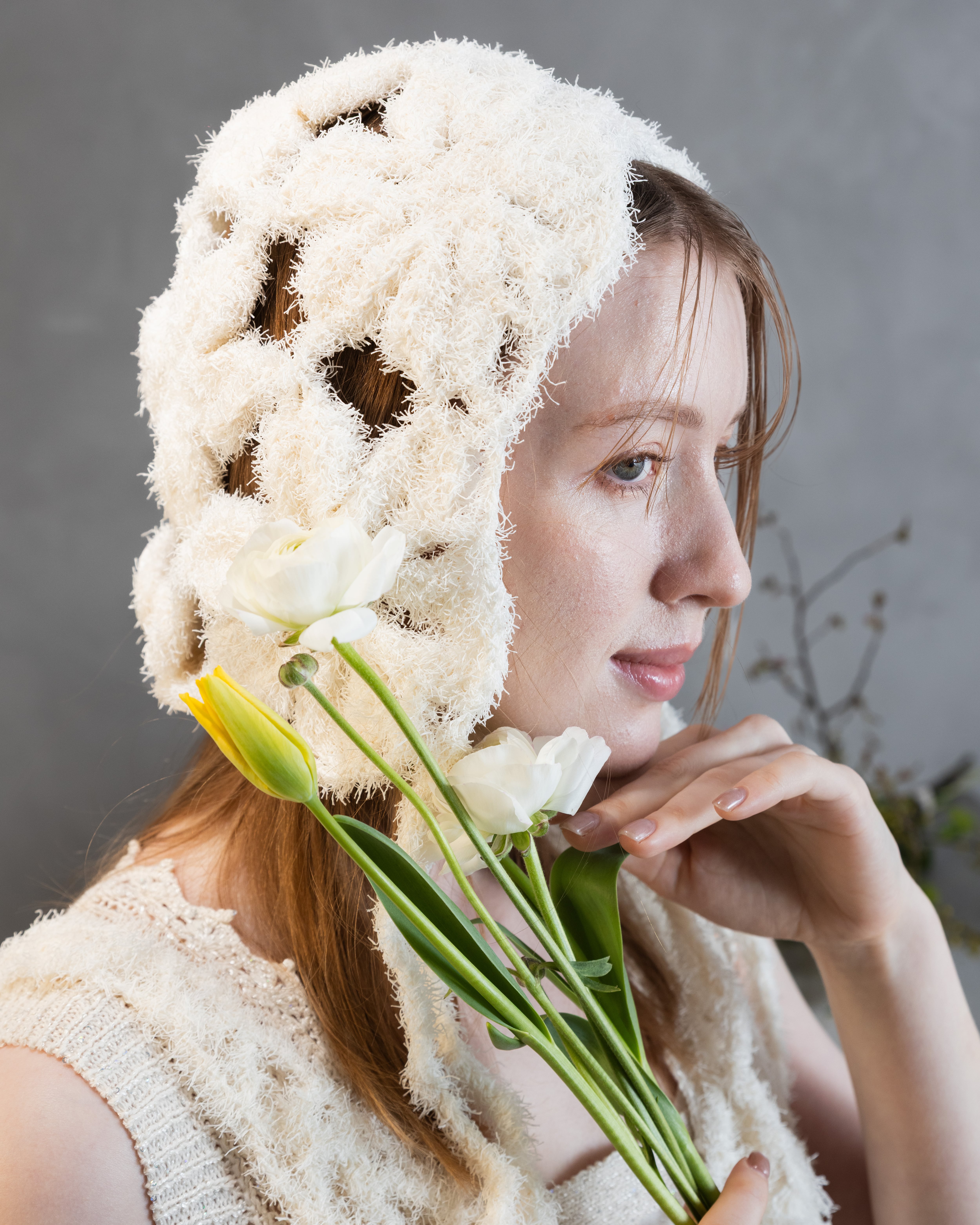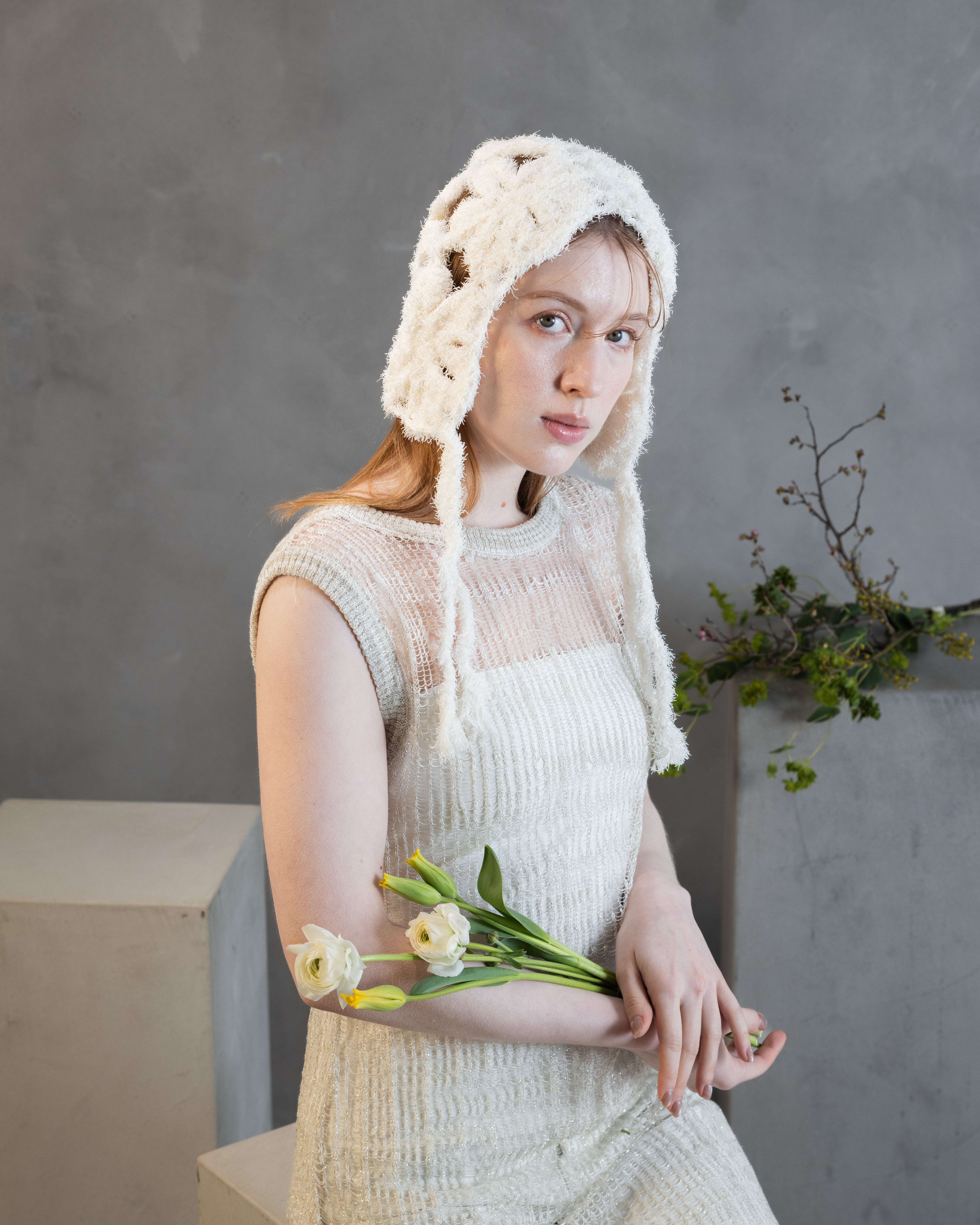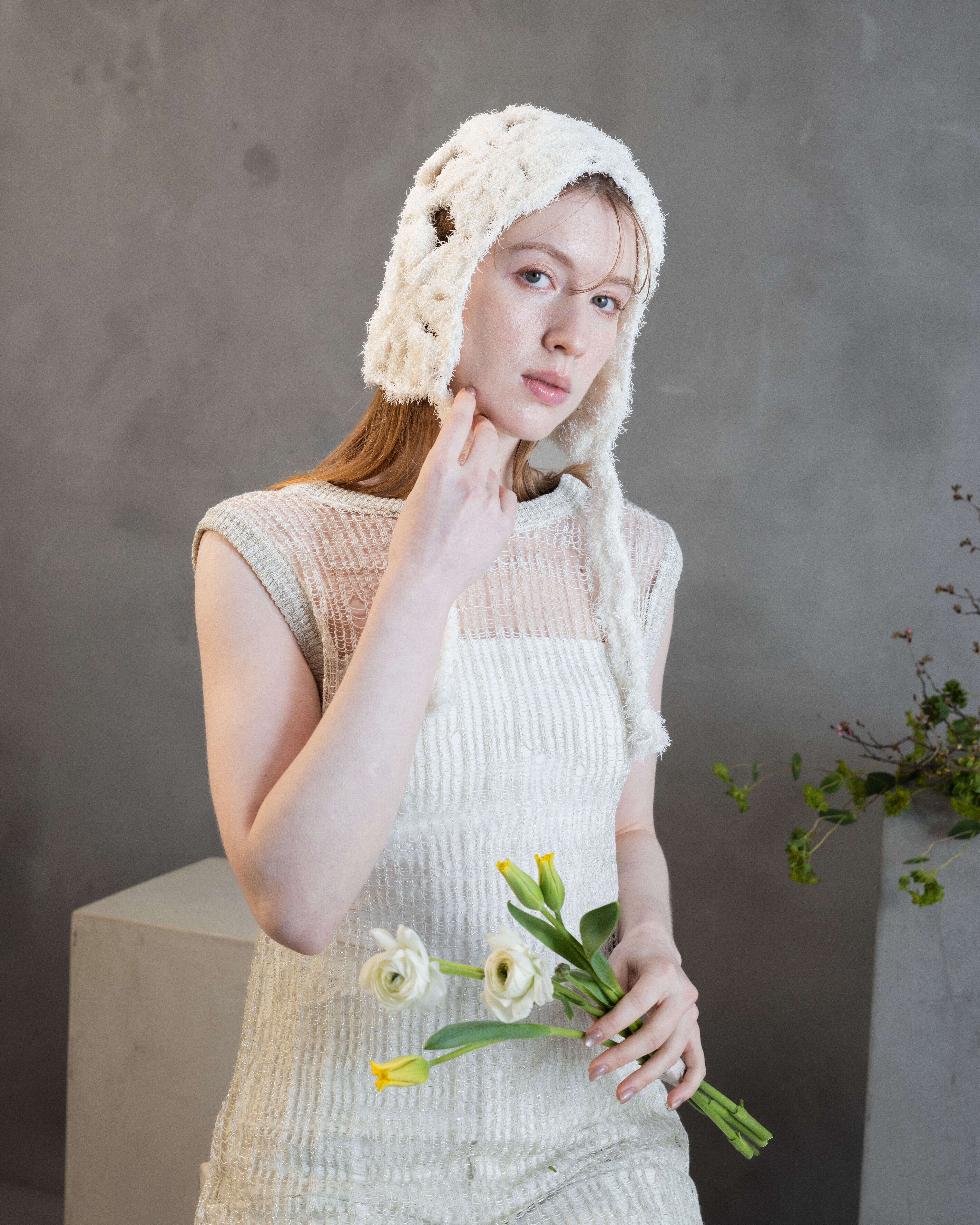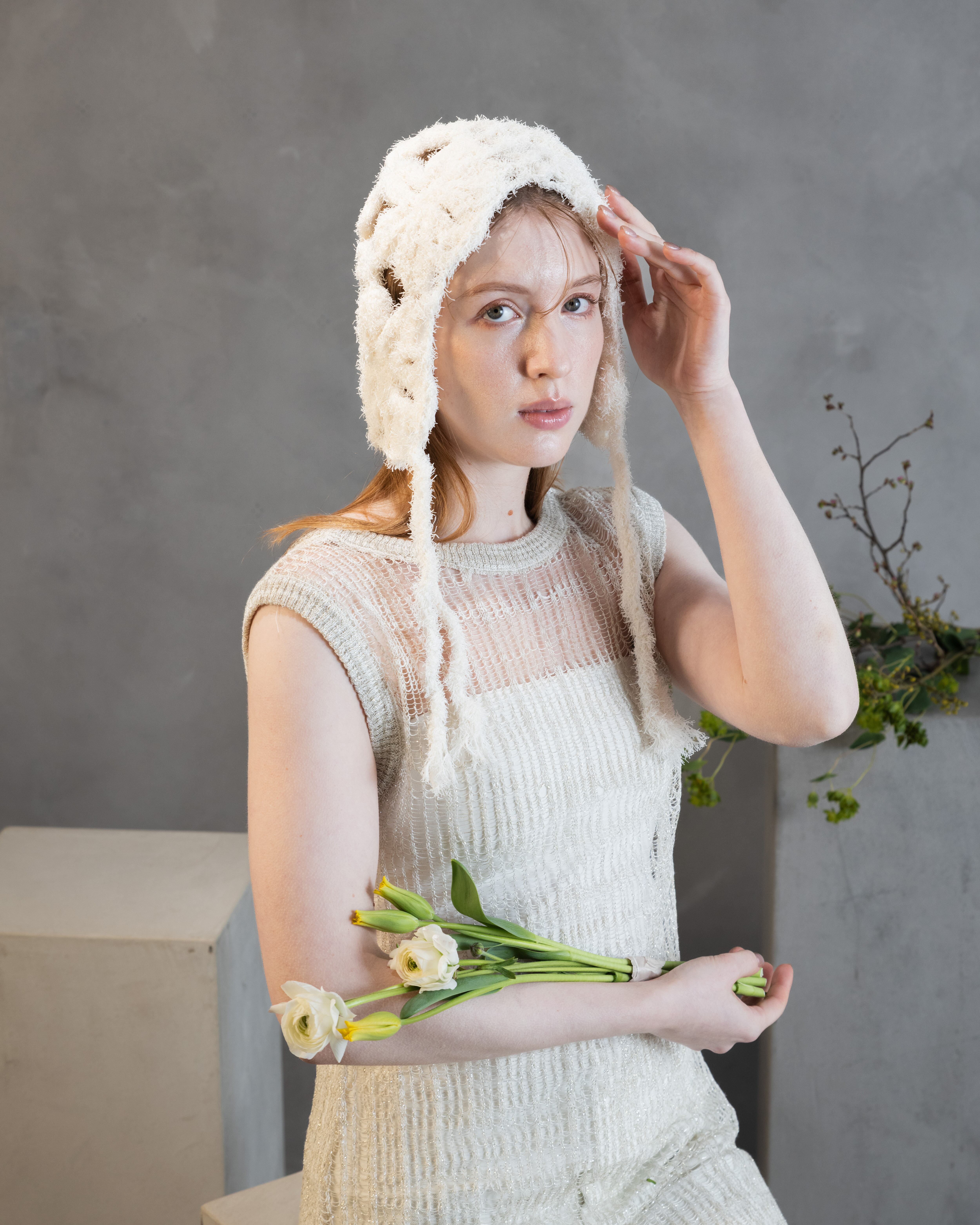 Canapa(ヘンプ麻)特有の、軽く清涼感ある夏らしい素材を生かし、モチーフ編みでさらに遊び心あるクラフト感を演出できるヘッドピースを作りました。