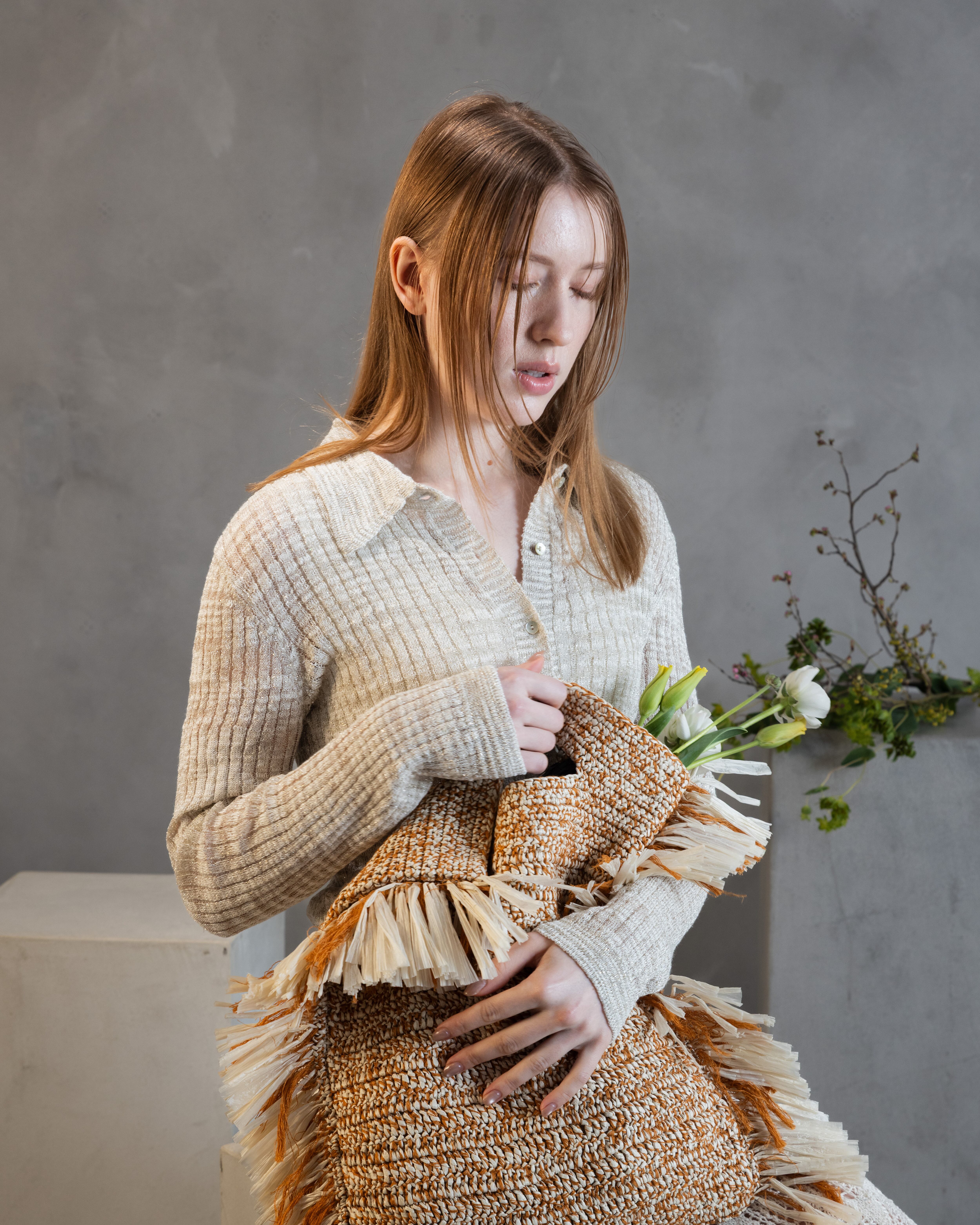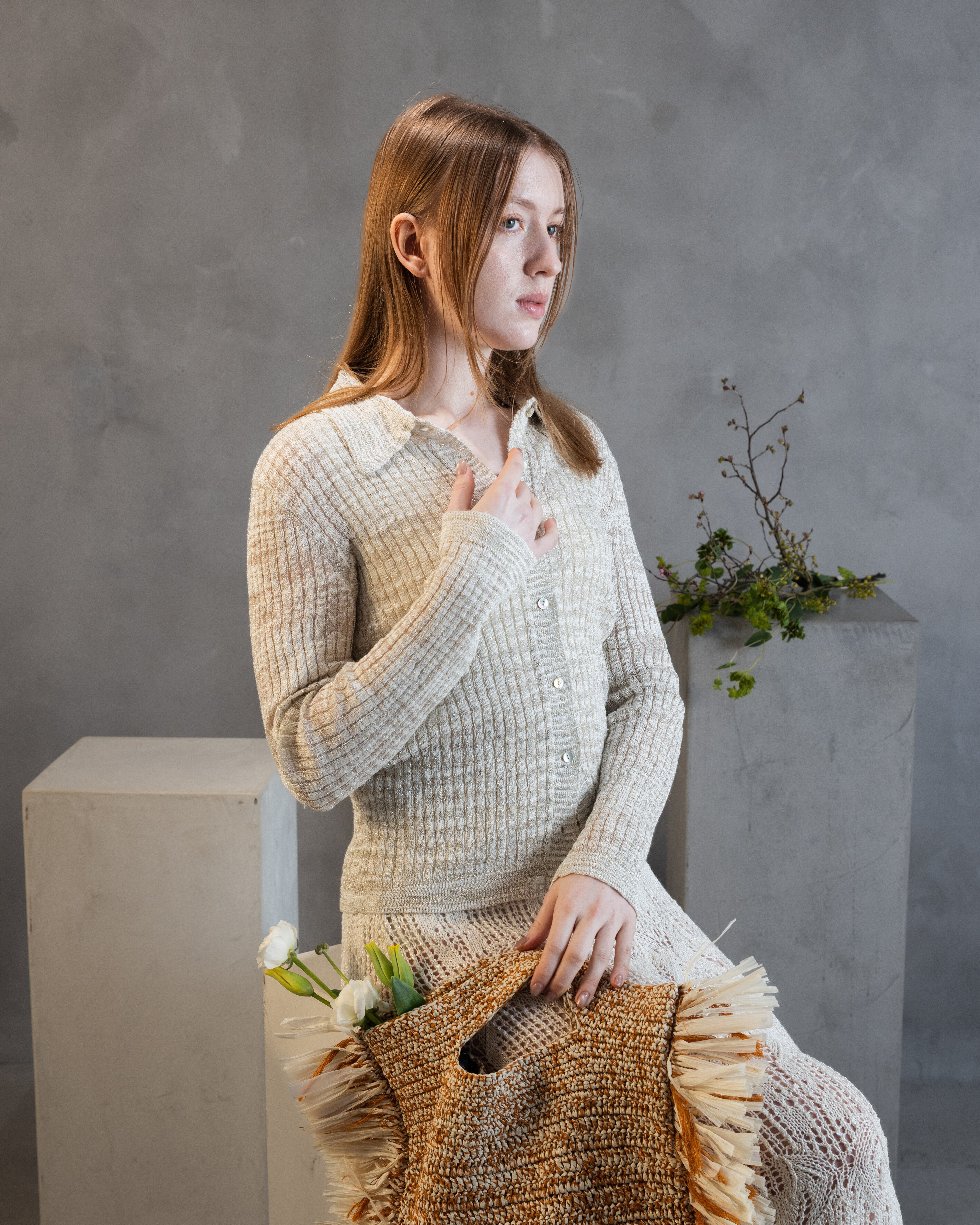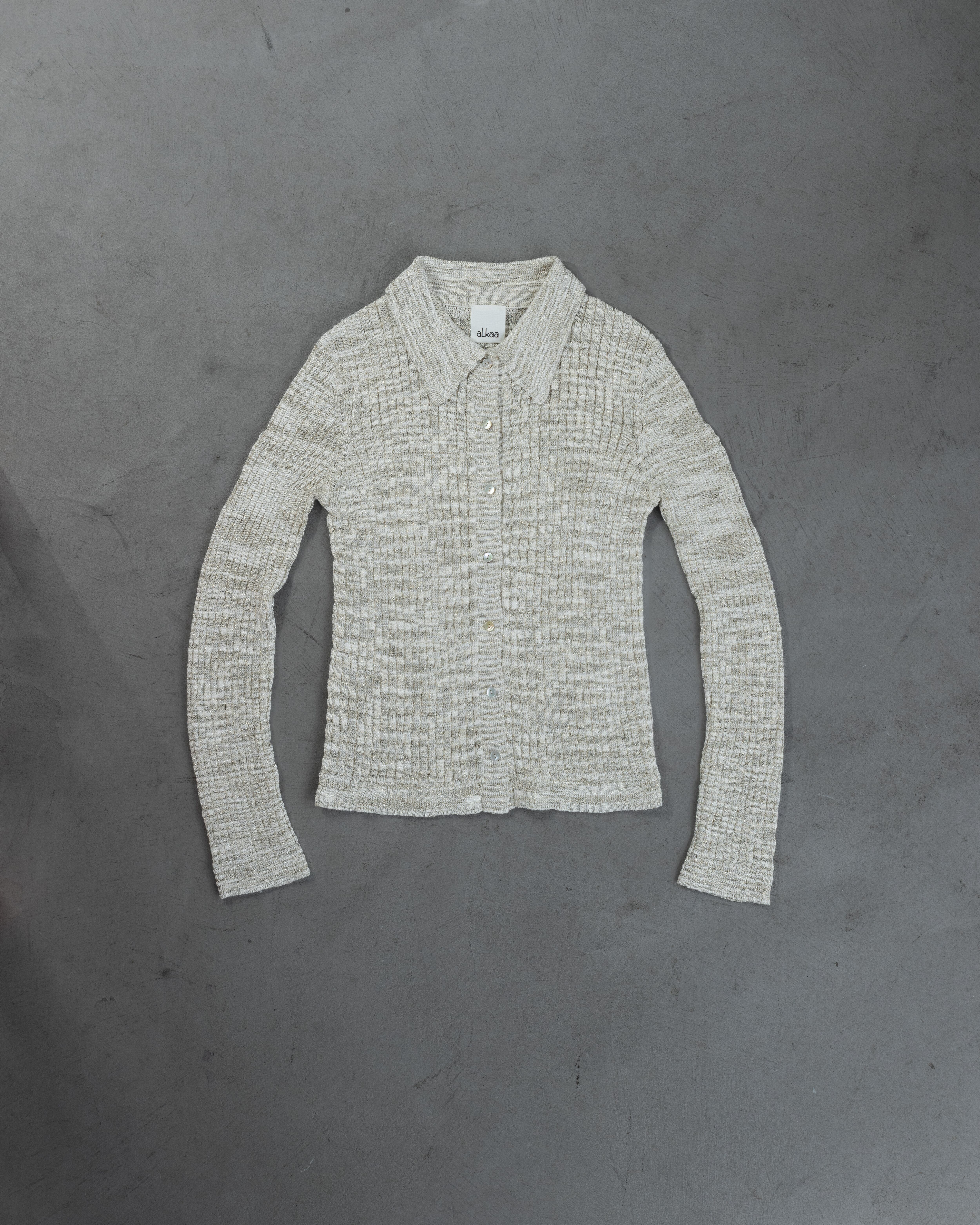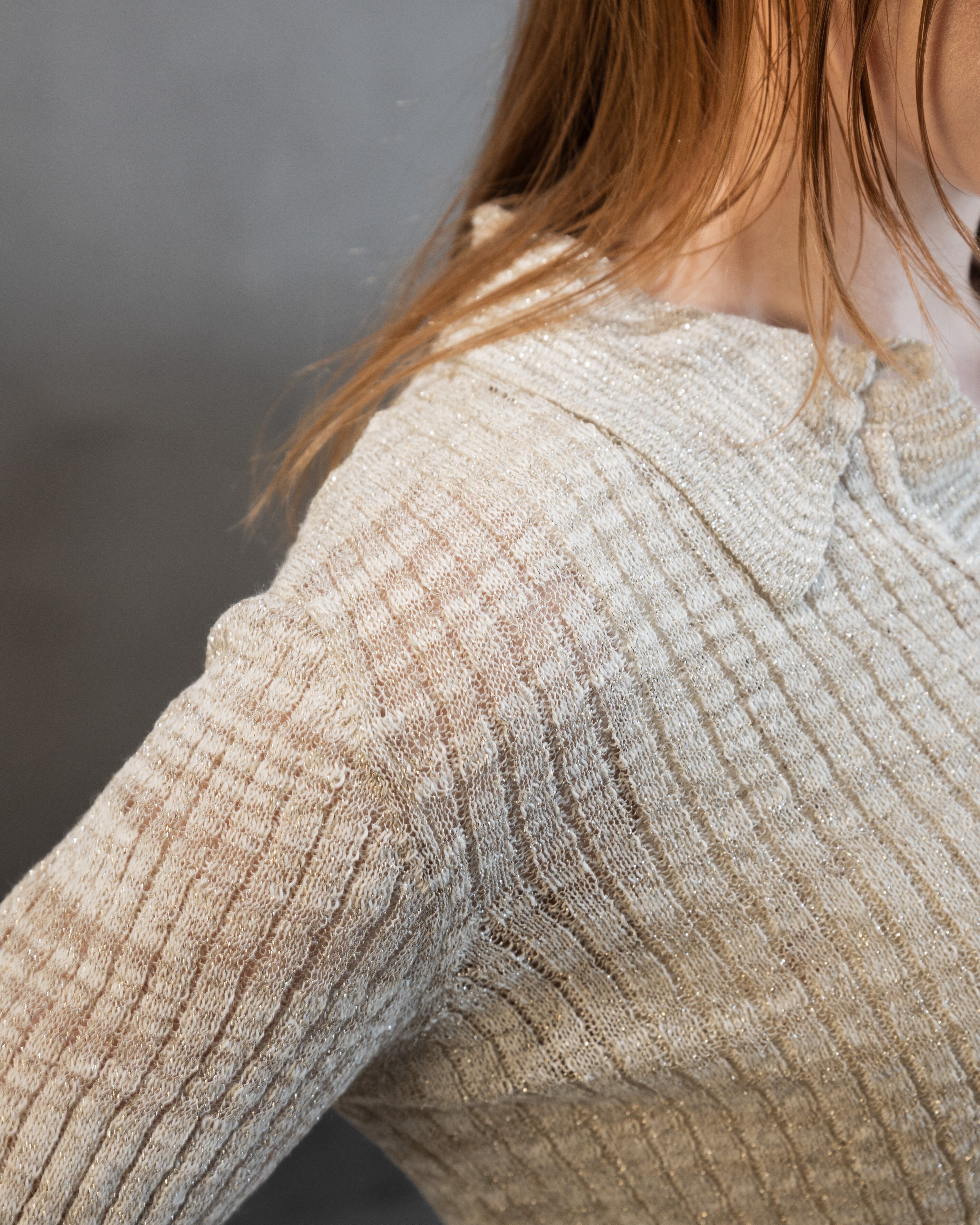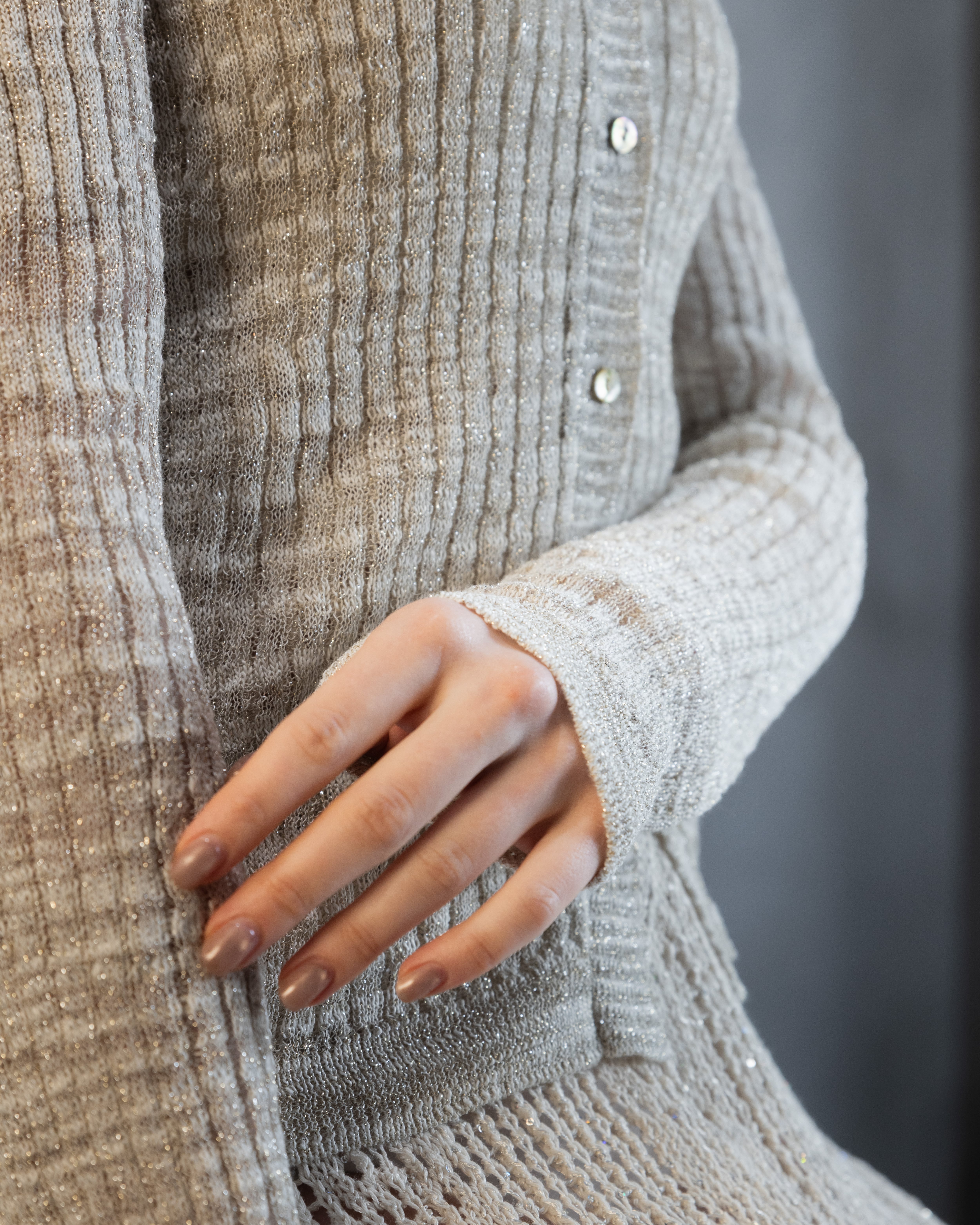 Fine Glitter Rib Polo Cardigan Knit